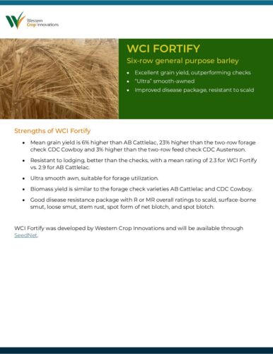 WCI is currently accepting applications for exclusive production and marketing rights for the two-row, semi-dwarf barley TR22669. Applicants must prepare a Production and Marketing Plan to submit along with the completed Variety Sub-Licensing Application form (linked below). Questions regarding the variety licensing process can be directed to WCI’s Business Development Officer, Erin Collier.